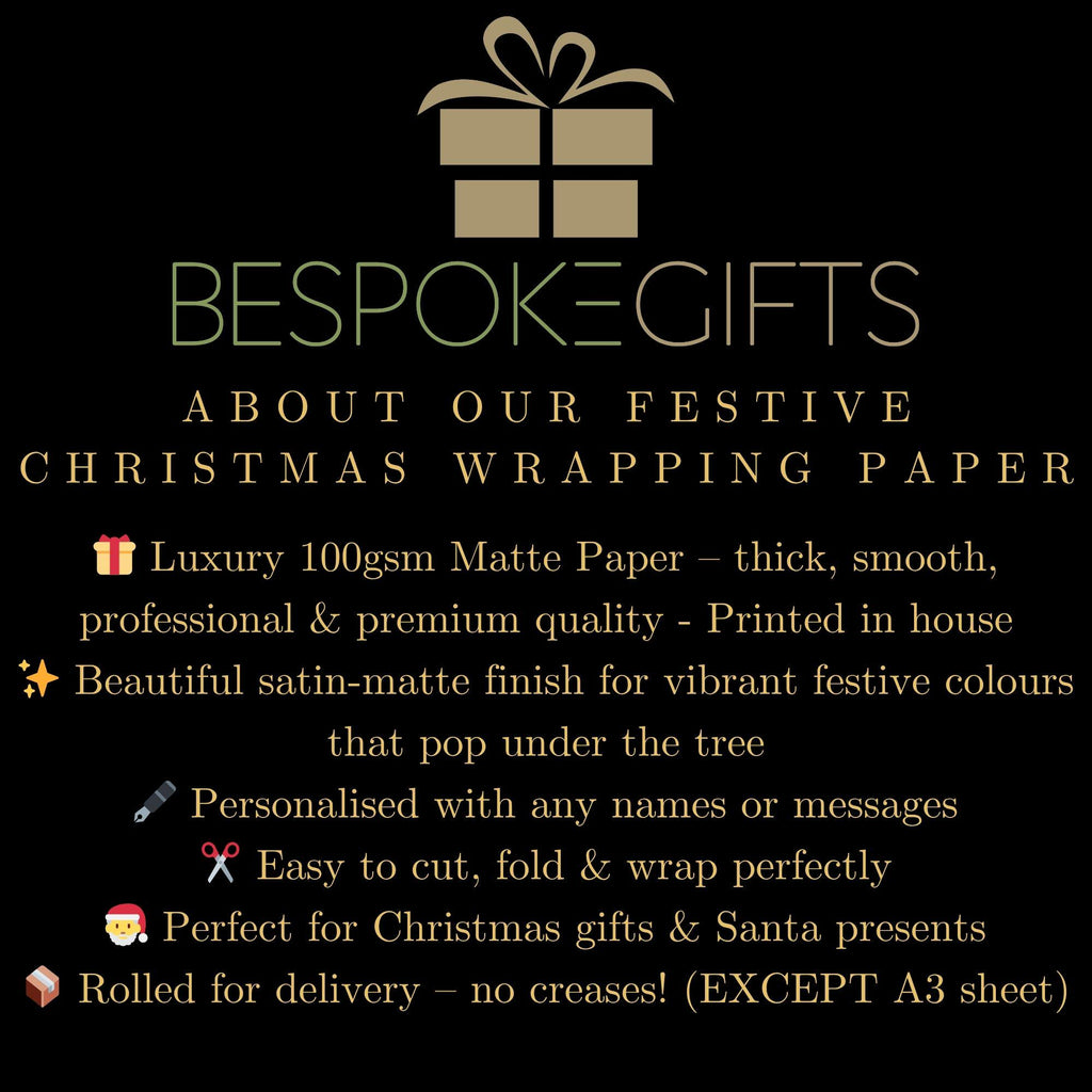 Wrap your gifts in festive style with our premium 100gsm personalised Christmas wrapping paper β the perfect finishing touch to make every present feel extra special this holiday season.
